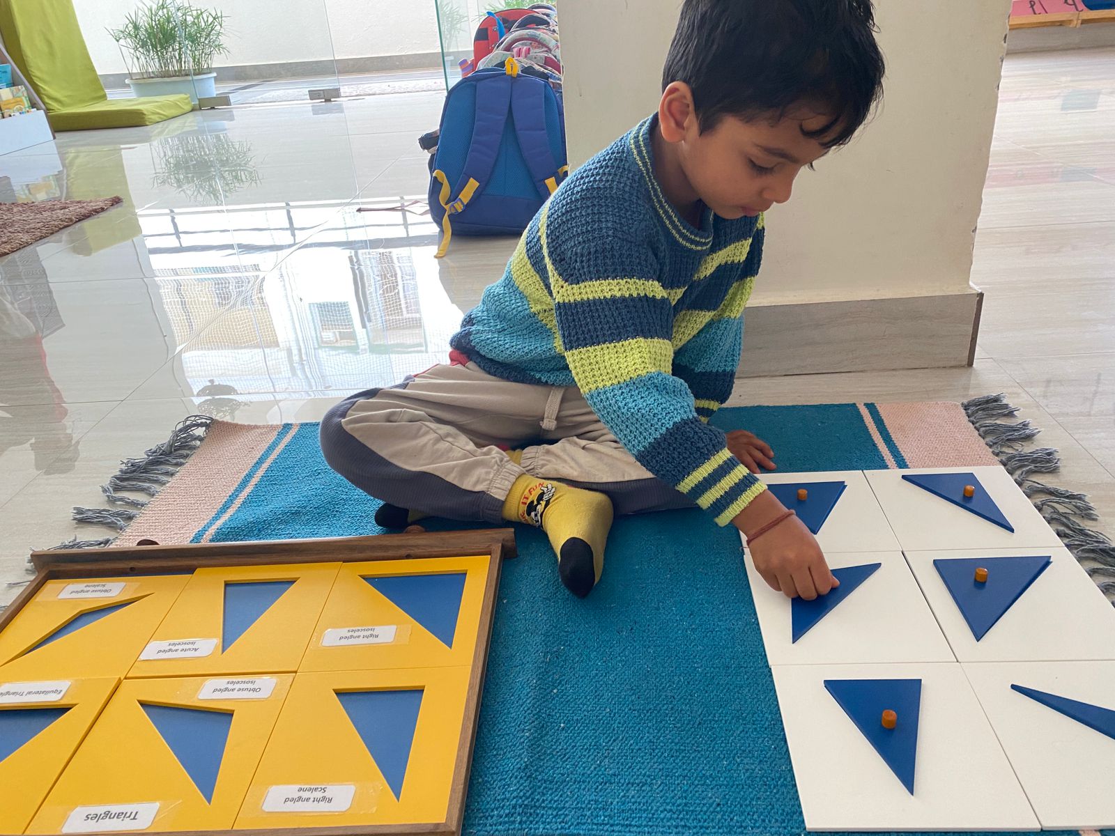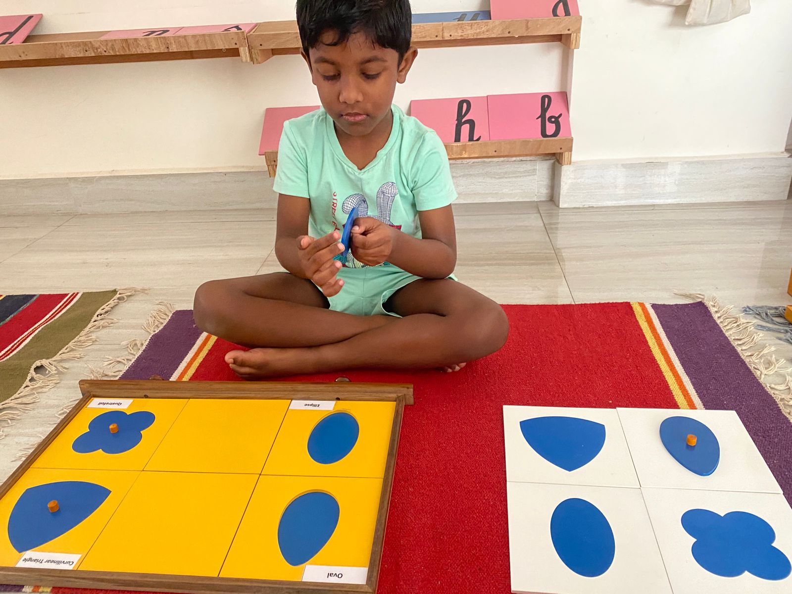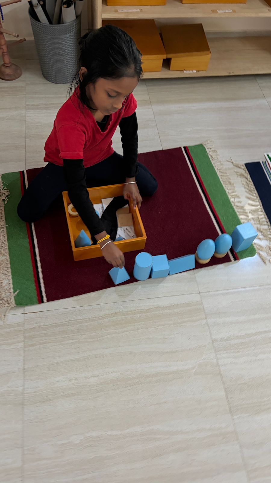 The classroom environment at Ved Griha is thoughtfully designed to support a child’s natural curiosity. Children are introduced to carefully structured learning materials that allow them to explore concepts independently and develop deep understanding through experience.