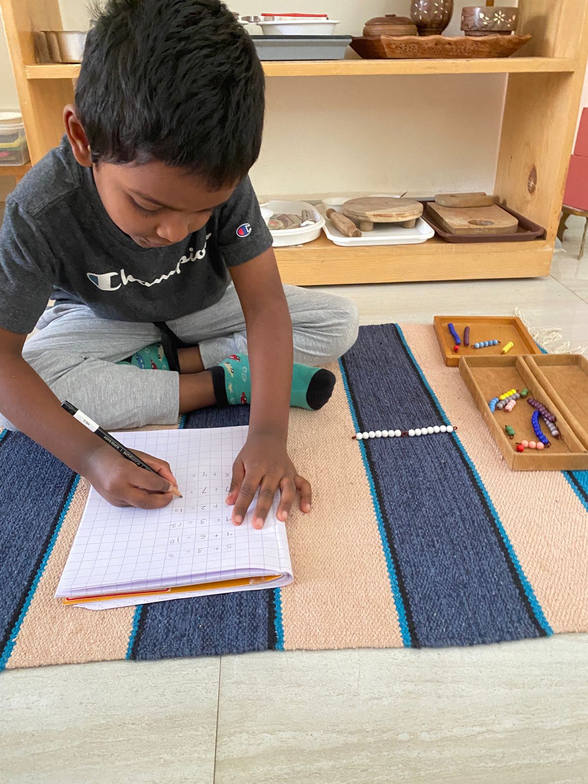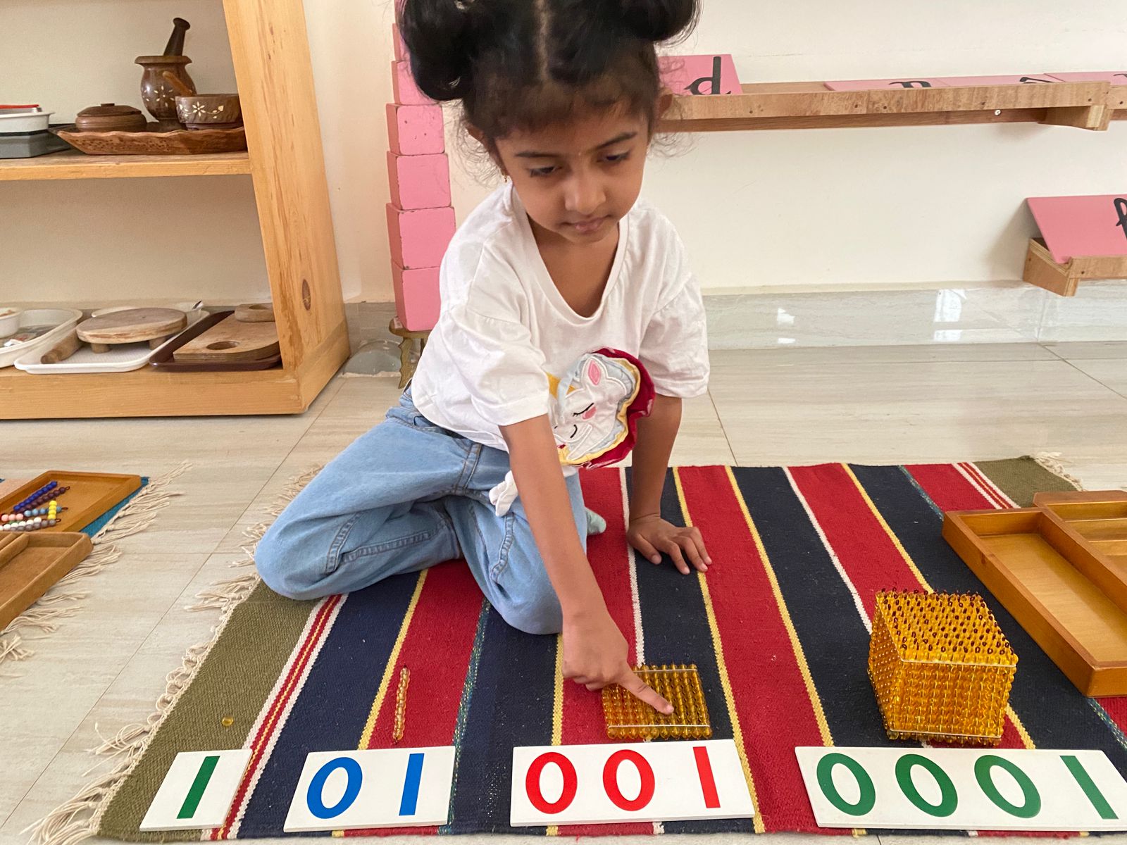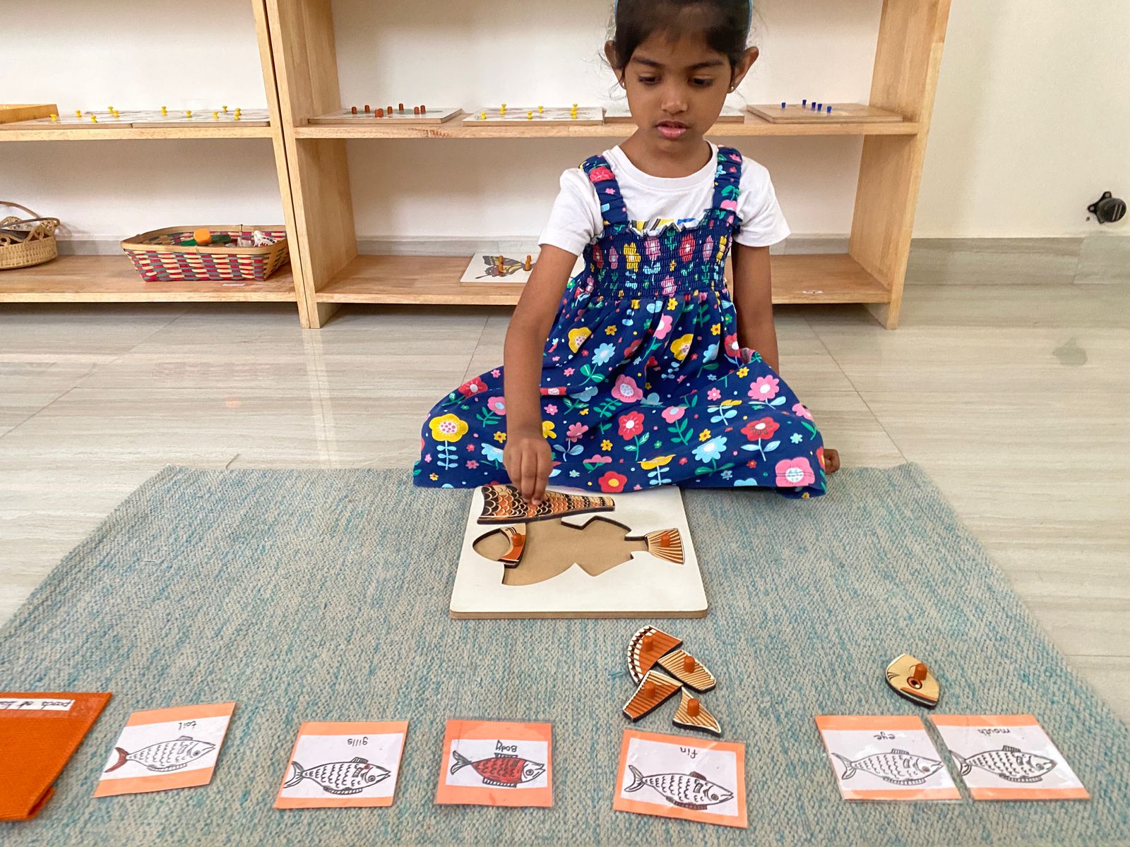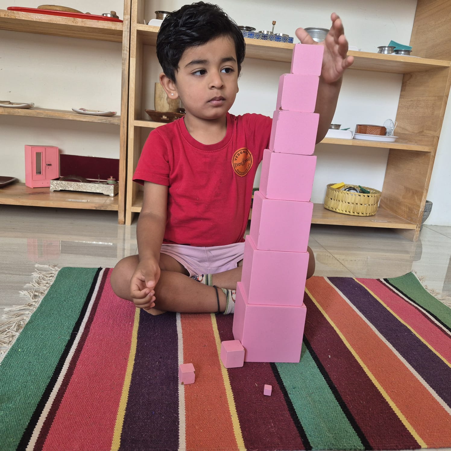 The classroom environment at Ved Griha is thoughtfully designed to support a child’s natural curiosity. Children are introduced to carefully structured learning materials that allow them to explore concepts independently and develop deep understanding through experience.